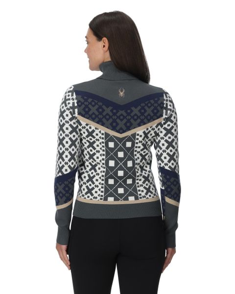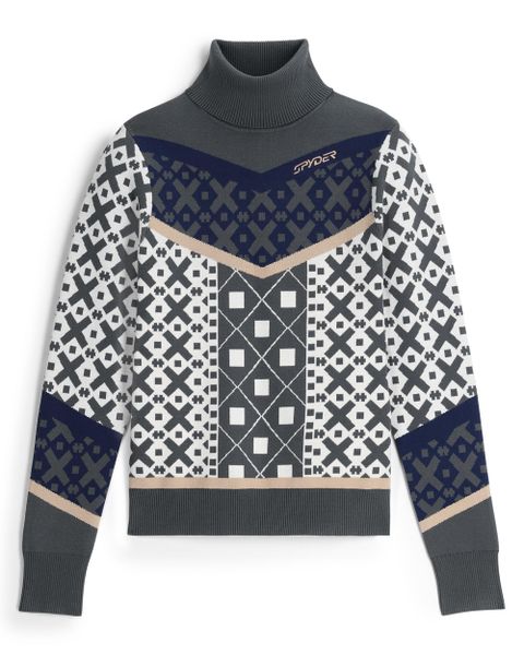 "The Stellar Ski Sweater from Spyder is the ideal companion for stylish and active women who want to feel good on the slopes. This sweater combines functionality and fashion by being made from a high-quality blend of 72% viscose and 28% polyester. The material not only keeps you warm, but is also comfortable to wear all day long. Thanks to the classic turtleneck design with turn-ups, the sweater offers additional protection against the cold and adds an elegant touch to any outfit."