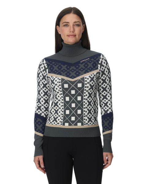 "Comfortable and stylish women's ski sweater made from a viscose/polyester blend, ideal for the slopes and produced in an environmentally friendly way."
