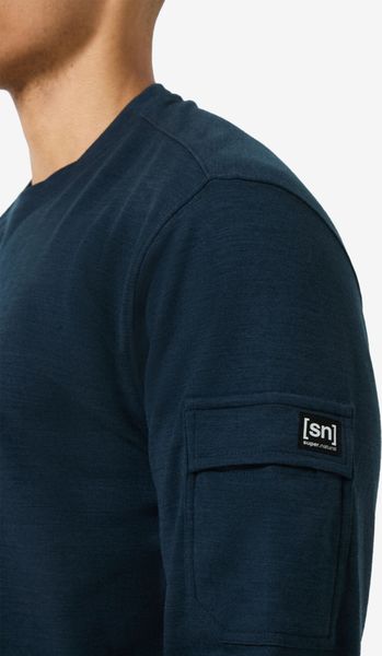 "Cozy merino pullover with a practical sleeve pocket, quick-drying and breathable for optimum comfort."
