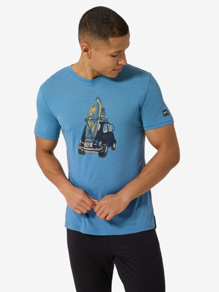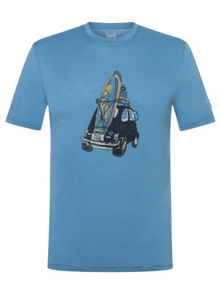 "Lightweight men's T-shirt with a surf motif for leisure, everyday wear and water sports made from high-quality wool in a regular fit."