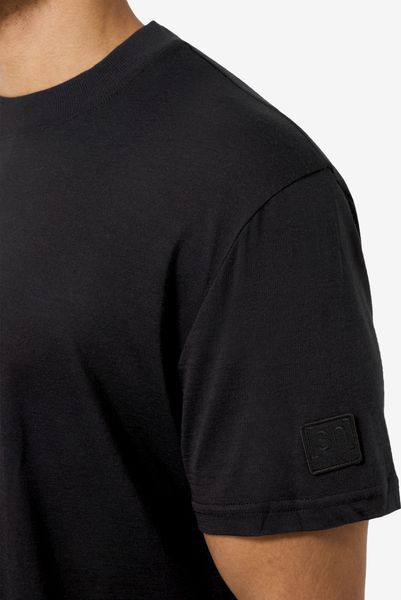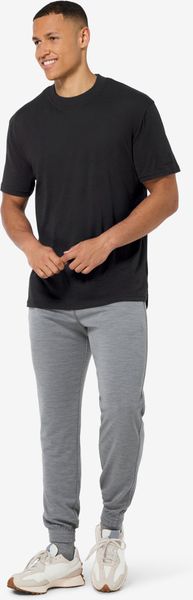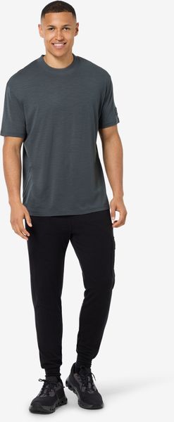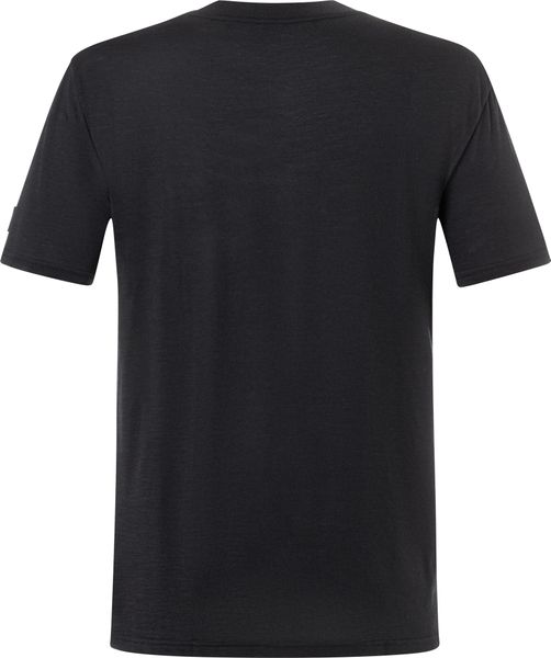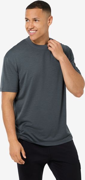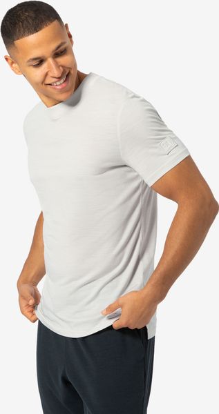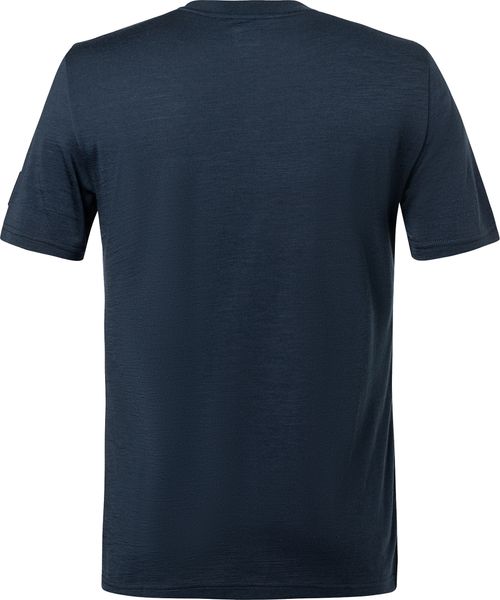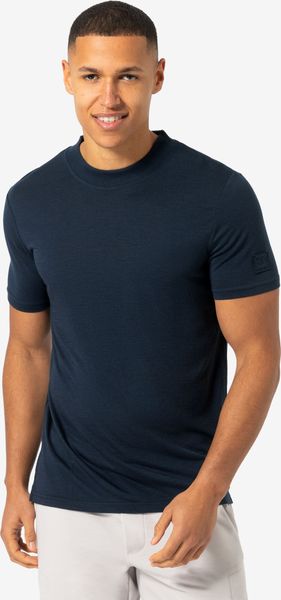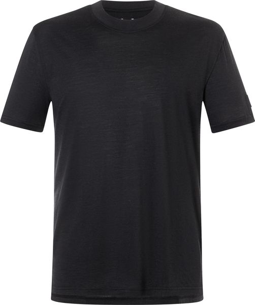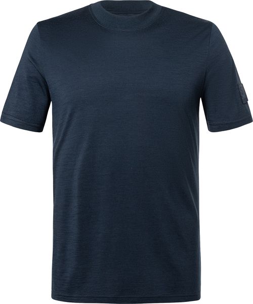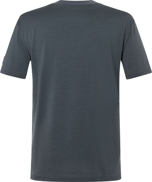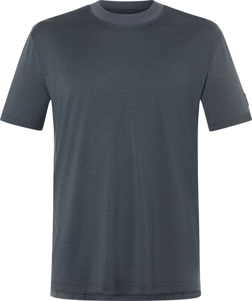 "Stylish, breathable men's T-shirt made from sustainable merino wool with a ribbed collar for everyday wear and travel."