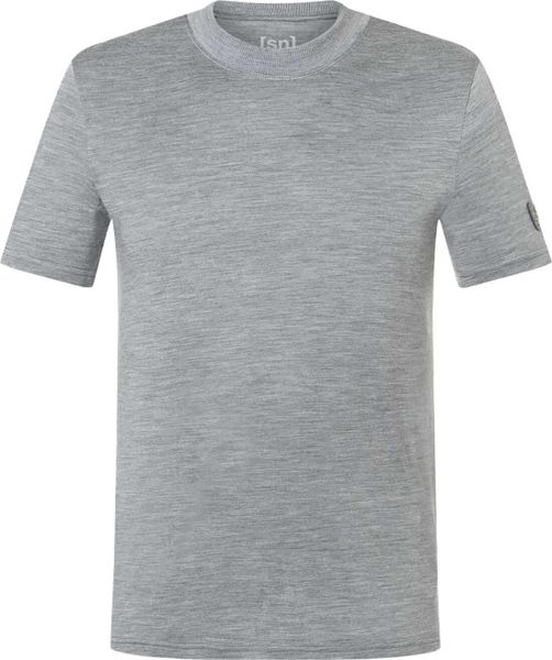 "Stylish, breathable men's T-shirt made from sustainable merino wool with a ribbed collar for everyday wear and travel."