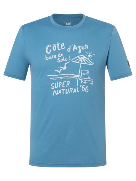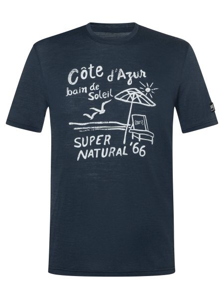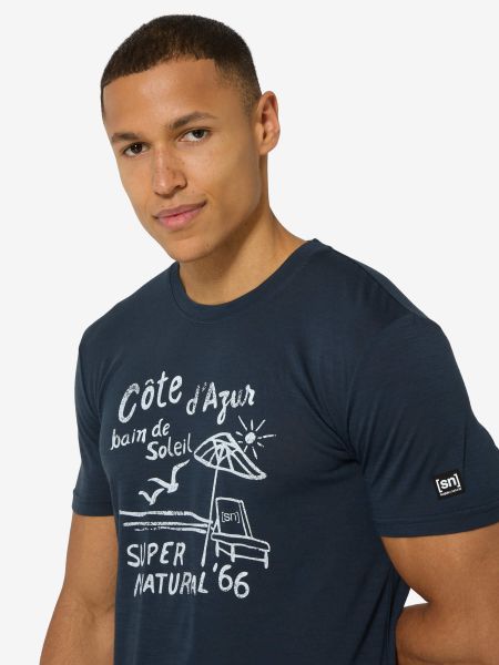 """Experience ""the ""relaxed ""atmosphere ""of ""the ""French ""Riviera ""right ""in ""your ""everyday ""life ""with ""the ""M ""Cote ""D'azur ""Tee ""from ""Super.Natural. ""This ""men's ""tee ""is ""perfect ""for ""leisure, ""everyday ""wear ""and ""activities ""involving ""swimming ""and ""water ""sports. ""The ""highlight ""is ""the ""hand-drawn ""front ""print, ""which ""features ""a ""beach ""motif, ""parasol ""and ""mermaids ""and ""is ""reminiscent ""of ""warm ""summer ""days ""and ""the ""sea ""breeze ""on ""the ""Côte ""d'Azur, ""capturing ""the ""feeling ""of ""vacation ""and ""relaxation."