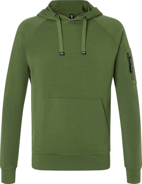 "Soft, functional merino hoodie with a practical sleeve pocket for leisure and outdoor adventures."
