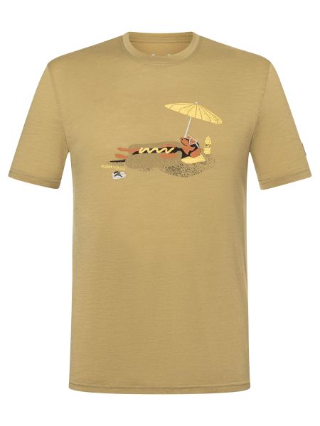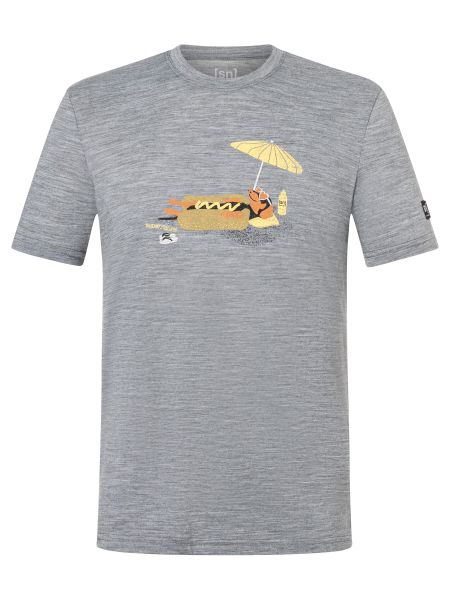 "Humorous men's T-shirt with odour-neutralizing wool material for everyday wear and water sports."