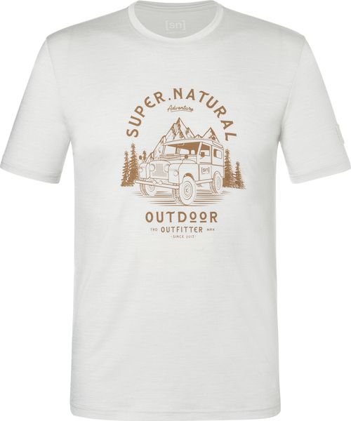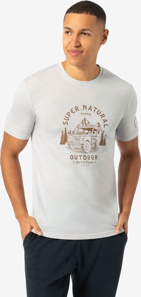 "Sustainable men's T-shirt made of BIO SUPER.WOOL for adventure, everyday life and travel with a casual Landrover print."