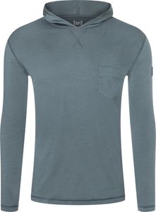 "Sustainable men's merino wool hoodie with environmentally friendly PrimaLoftu00e Bio technology for versatile activities."