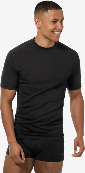 "Made from high-quality Ponte Roma fabric, the T-shirt combines fine merino wool with a diameter of 16.5 microns with performance-polyester and Lycra. This blend of materials not only ensures an elegant look, but also comfortable stretch and a perfect fit. The luxuriously soft, opaque merino base layer features an elegant round neckline and offers maximum comfort without itchiness thanks to its elastic properties. The Tshirt is also machine washable, making it particularly easy to care for"