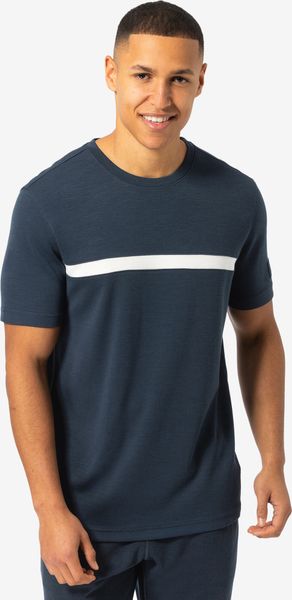 "Sustainable men's T-shirt made from merino wool and organic PrimaLoftu00u00ae, ideal for leisure, travel and everyday wear."