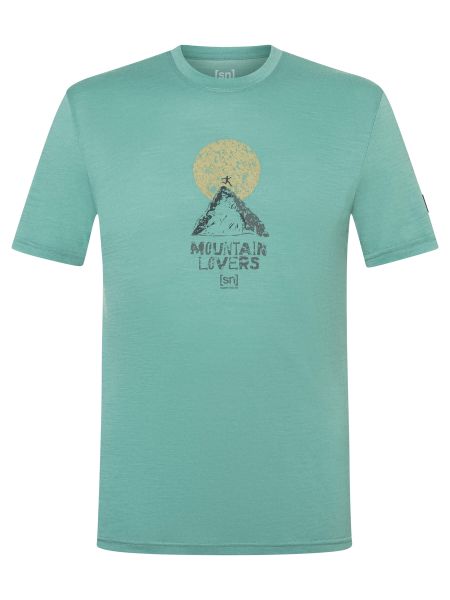 "" """The ""short-sleeved ""design ""with ""a ""striking ""outdoor ""print ""makes ""the ""T-shirt ""not ""only ""functional, ""but ""also ""fashionable. ""It ""is ""scratch-free ""and ""machine ""washable, ""making ""it ""an ""uncomplicated ""companion ""for ""all ""adventuresu2013 ""be ""it ""mountain ""tours, ""winter ""adventures ""or ""simply ""everyday ""wearu2013. ""The ""breathable ""properties ""of ""the ""wool ""ensure ""that ""you ""always ""feel ""comfortable, ""whatever ""the ""weather."