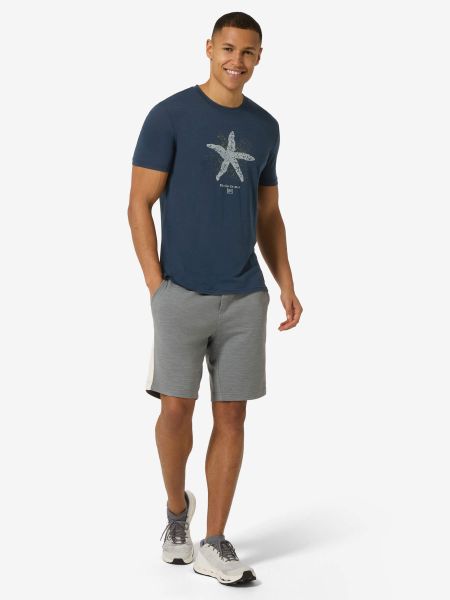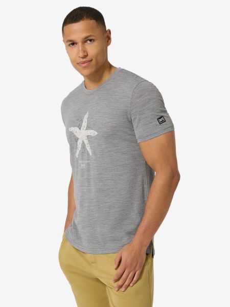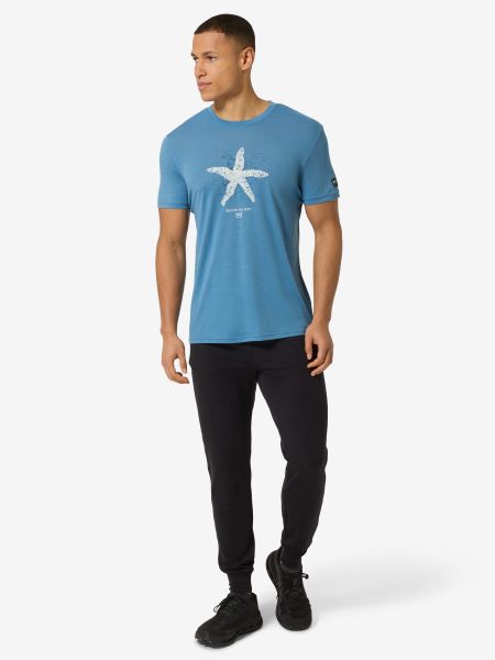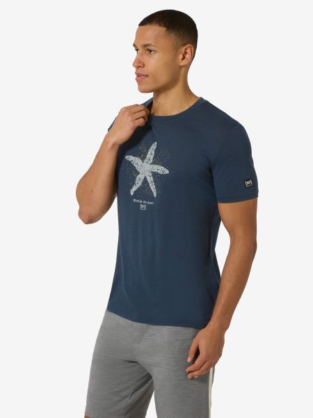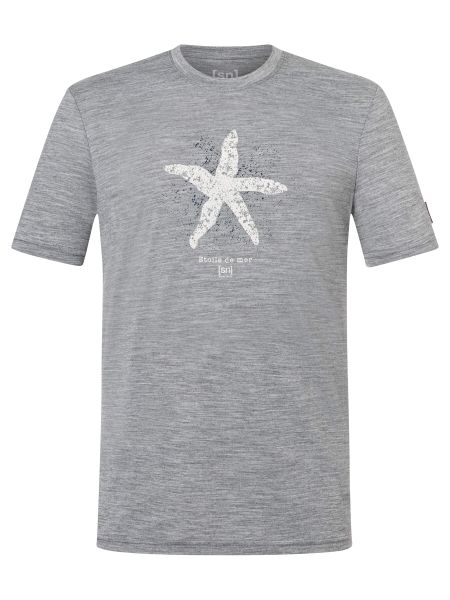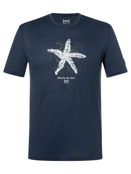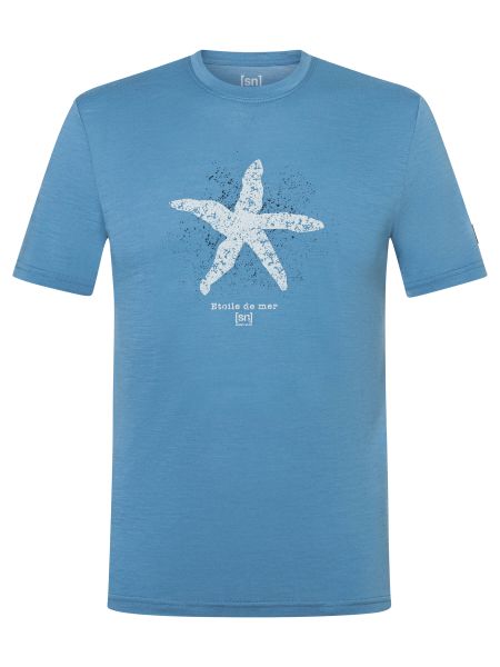 "Stylish men's merino T-shirt with a nautical starfish print, ideal for everyday wear and water sports."