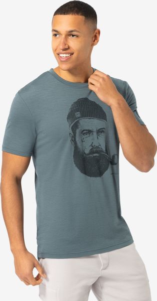 "High-quality, environmentally friendly men's T-shirt made from merino wool, ideal for everyday wear and leisure with maritime charm."