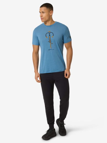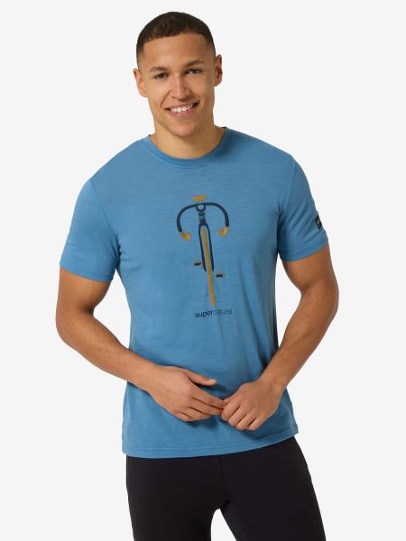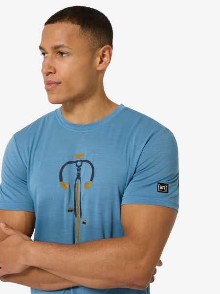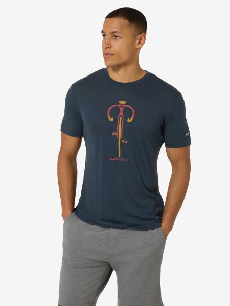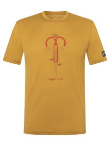 "Lightweight, breathable merino T-shirt with UV protection and vintage bike print, ideal for various outdoor activities."