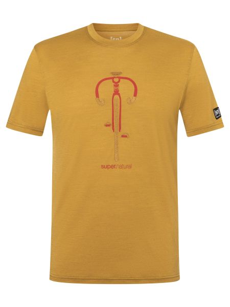 """The ""M ""Vintage ""Bike ""Tee ""from ""Super.Natural ""is ""the ""ideal ""companion ""for ""men ""who ""want ""to ""be ""stylish ""in ""the ""city ""as ""well ""as ""in ""the ""great ""outdoors. ""This ""high-quality ""merino ""T ""shirt ""combines ""functionality ""with ""a ""touch ""of ""nostalgia ""thanks ""to ""the ""elegant ""vintage ""bicycle ""print ""and ""embroidered ""accents. ""The ""ADVANCED ""WOOL ""140 ""technology ""ensures ""optimum ""breathability ""and ""a ""comfortable ""feel ""without ""itchiness, ""making ""it ""perfect ""for ""cycling, ""road ""cycling, ""hiking, ""fitness ""and ""training."