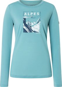 "The W Alpes LS from Super.Natural is the ideal companion for anyone who loves alpine adventures. This long-sleeved shirt combines stylish design with functional performance, perfect for skiing, ski touring or traveling. The alpine print gives the shirt a special touch and reflects the passion for winter sports."