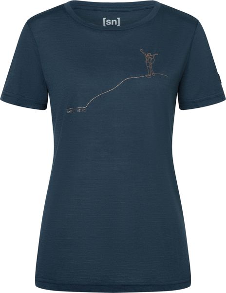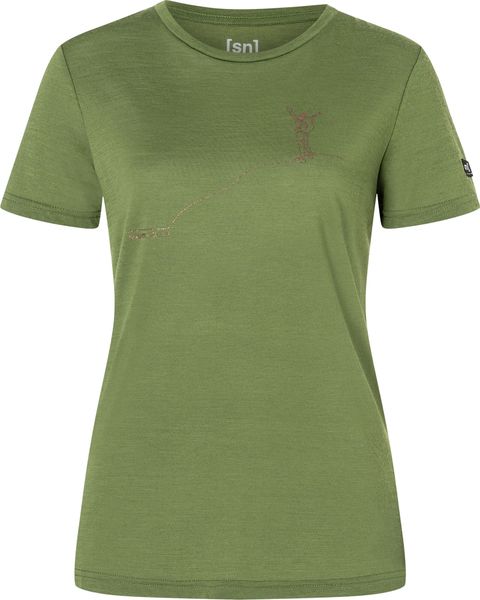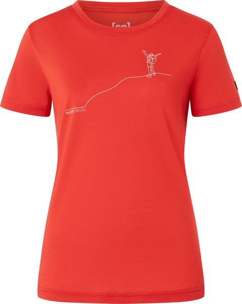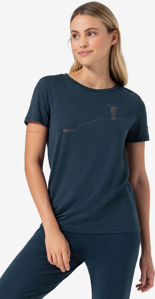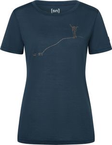 "Discover the perfect all-rounder for your everyday life with the stylish W Bergglu00fcck Tee from Super.Natural. This fitted women's shirt not only impresses with its trendy print, but also with its high-quality merino wool blend, which makes it comfortable to wear. Merino wool is known for its temperature-regulating properties, which provide optimum support on both cool and warm days. The slim fit emphasizes your silhouette while offering a high level of comfort"