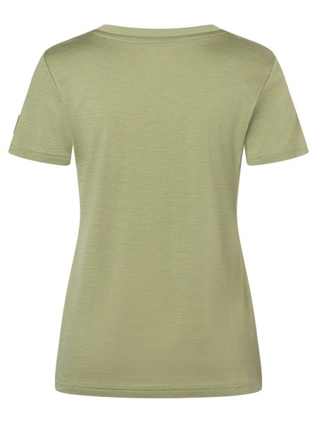 "Sustainable women's T-shirt with merino and PrimaLoftu00u00e Biou2122 fiber, ideal for leisure and outdoor activities."
