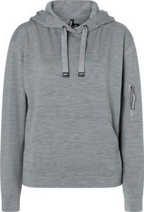 "Versatile women's hoodie made from soft wool, ideal for outdoor activities and everyday wear, with a practical sleeve pocket."