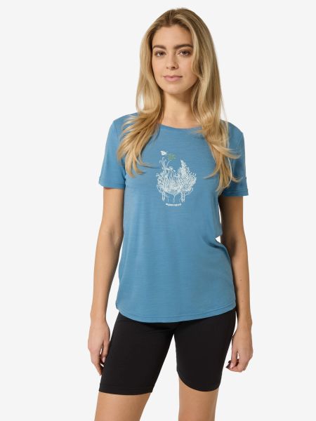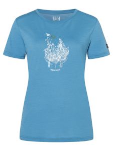 "Lightweight merino T-shirt with floral print, ideal for hiking, fitness and leisure activities."