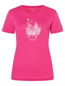 "Lightweight merino T-shirt with floral print, ideal for hiking, fitness and leisure activities."