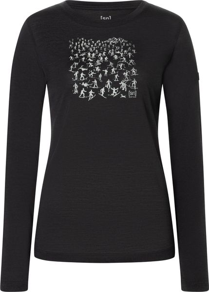 "The W Free Ski Tickets LS from Super.Natural is the perfect longsleeve for all ski fans who want to combine style and functionality. With a humorous print that alludes to every skier's dream, this top will quickly become a favorite in your wardrobe. Made from the innovative ADVANCED WOOL 140, a blend of 50% merino wool and 50% polyester, it offers optimum breathability and comfort. This combination of materials not only ensures excellent temperature regulation, but also makes the shirt lightweight and space-saving u2013 ideal for on the gou2013."