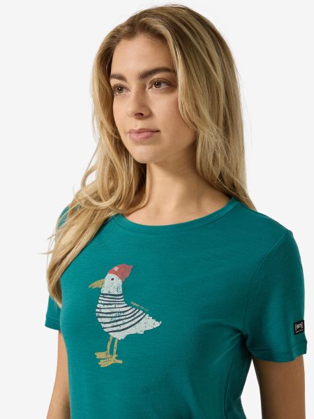 "Lightweight, odour-inhibiting merino T-shirt with a maritime print for versatile activities and optimum comfort."