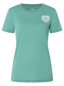 "Versatile women's merino T-shirt with heart print, ideal for everyday and outdoor use, breathable and easy-care."