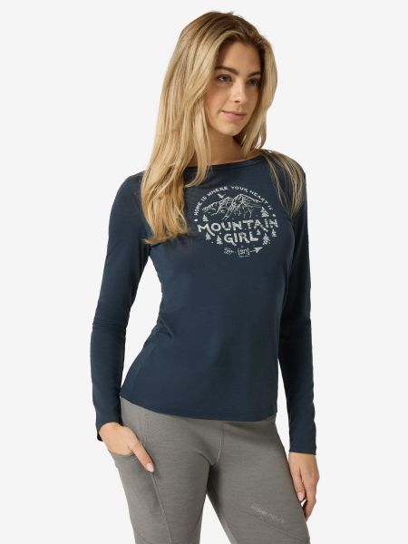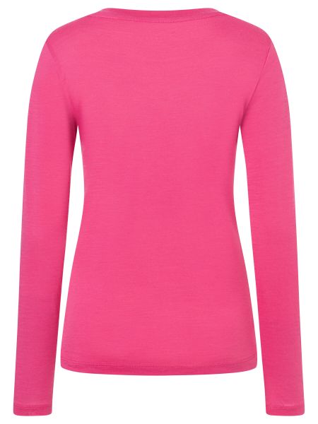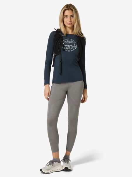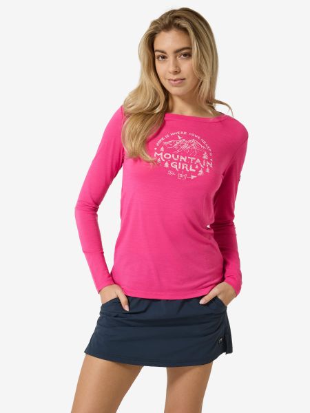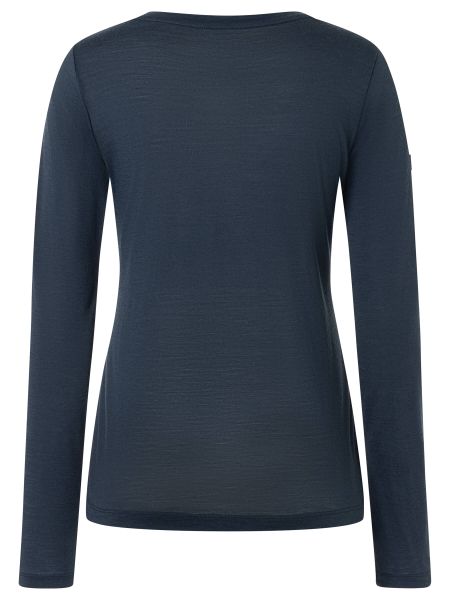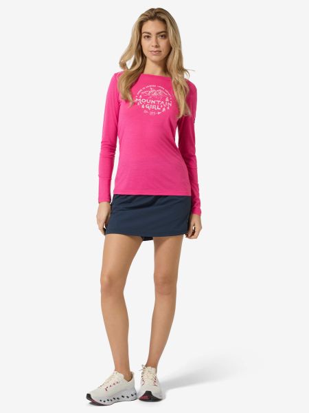 "Lightweight, odor-inhibiting merino long-sleeved shirt for women, ideal for outdoor activities and everyday wear."