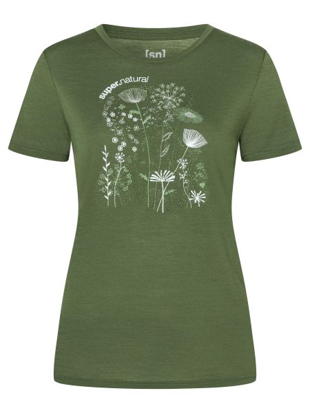 """The ""W ""Rock ""Flowers ""Tee ""from ""Super.Natural ""is ""the ""perfect ""all-roundershirt ""for ""women ""who ""value ""comfort ""and ""style. ""Made ""from ""the ""innovative ""ADVANCED ""WOOL ""140 ""merino ""wool ""blend, ""this ""T-shirt ""offers ""outstanding ""breathability ""and ""natural ""UV ""protection. ""The ""lightweight ""merino ""wool ""not ""only ""makes ""it ""comfortable ""to ""wear, ""but ""also ""ensures ""optimum ""temperature ""regulation, ""whether ""you're ""hiking, ""in ""everyday ""life ""or ""during ""an ""intensive ""fitness ""session."