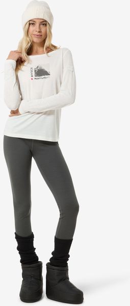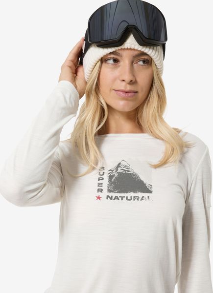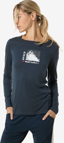 "The W Super Mountain BIO J LS from Super.Natural is the ideal companion for anyone who values functionality and sustainability in equal measure. Whether for winter sports, hiking or everyday urban life, this longsleeve offers an incomparable combination of warmth, breathability and style. The modern mountain print on the chest gives the shirt a special touch that appeals to outdoor enthusiasts and eco-conscious fashionistas alike."