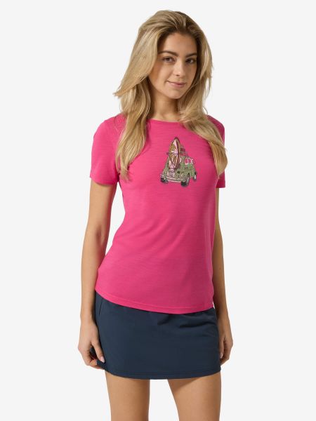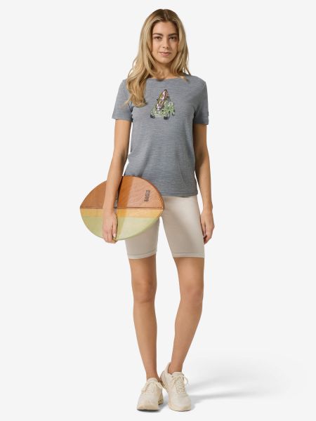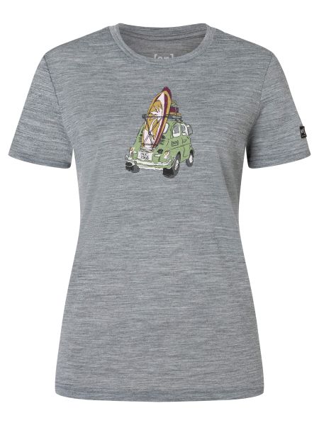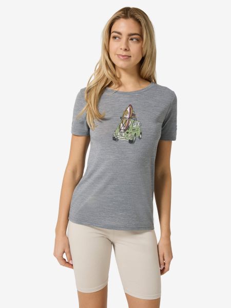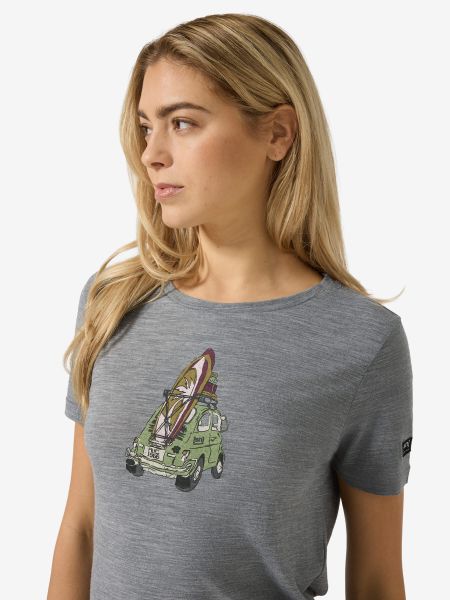"T-shirt with surf car motif for women, quick-drying and made of wool, ideal for leisure and water sports."