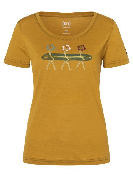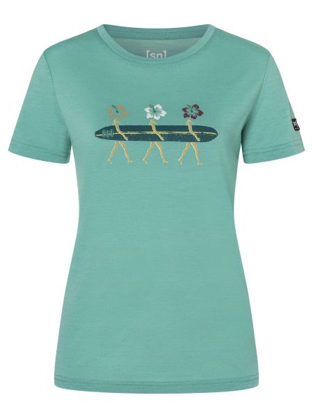 """Experience ""summer ""with ""the ""W ""Surfing ""Flowers ""Tee ""from ""Super.Natural, ""which ""brings ""a ""vacation ""feeling ""and ""surf ""vibes ""straight ""into ""your ""everyday ""life. ""This ""stylish ""ladies-T ""shirt ""is ""made ""from ""high-quality ""wool, ""which ""is ""known ""for ""its ""quick-drying ""properties, ""and ""is ""perfect ""for ""fitness, ""training, ""leisure, ""everyday ""life ""as ""well ""as ""swimming ""and ""water ""sports ""activities. ""The ""playful ""print ""motif ""with ""stylized ""flowers ""carrying ""a ""surfboard ""gives ""the ""shirt ""a ""creative ""and ""feminine ""touch, ""while ""the ""slim ""fit ""cut ""offers ""a ""flattering ""silhouette. ""Whether ""you're ""strolling ""through ""town ""or ""in ""the ""office, ""this ""shirt ""is ""a ""casual ""eye-catcher ""that ""is ""not ""only ""fashionable ""but ""also ""functional."