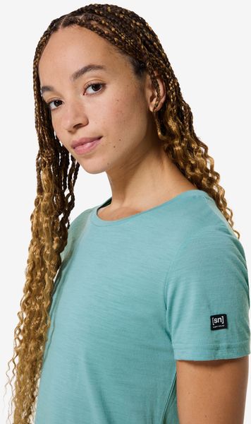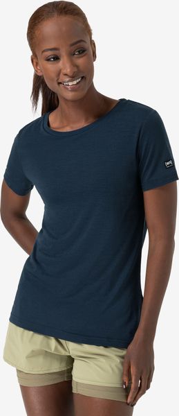 The "ESSENTIAL TEE" "is an indispensable merino T-shirt for every day. With its lightweight, flowing fabric made from" "ADVANCED WOOL 140""u00a0offers a comfortable feel against the skinu00a0. The blend of 50% merino wool and 50% polyester makes it a thin but robust all-rounder. Its regular fit and slightly tailored cut ensure a perfect fit, ideal for women during sports and leisure time"