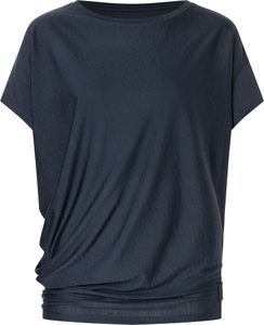 "Sustainable women's T-shirt made from merino wool, ideal for yoga, pilates and everyday wear, with a casual asymmetric cut."