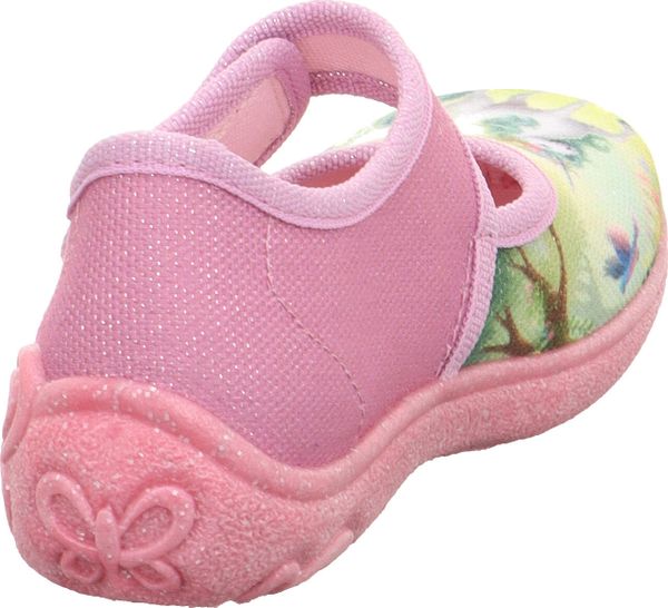 """These ""delightful ""slippers ""are ""the ""perfect ""choice ""for ""fashion-conscious ""and ""active ""girls. ""They ""are ""ideal ""for ""leisure ""activities ""and ""camping ""adventures, ""while ""their ""warm ""wool ""lining ""ensures ""comfort, ""especially ""on ""colder ""days. ""The ""shoe ""is ""equipped ""with ""a ""practical ""Velcro ""fastener ""that ""makes ""it ""easy ""to ""put ""on ""and ""take ""off, ""while ""the ""cute ""butterfly ""detail ""on ""the ""non-slip ""sole ""adds ""a ""playful ""accent. ""This ""sole ""supports ""the ""natural ""rolling ""movement ""of ""the ""foot ""while ""providing ""stability ""without ""leaving ""marks ""on ""the ""floor."