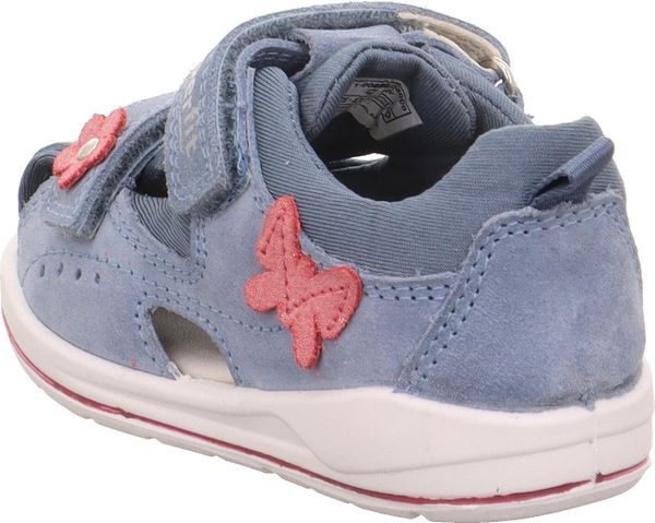 Super soft, light and flexible, the BOOMERANG baby walker sandal ensures carefree steps. The flowers and butterfly appliqué on this cute superfit shoe promise this from the very first glance. Thanks to the Velcro fasteners, the cheerful sandal can be opened wide, making it easier to put on. The combination of soft velour and textile adds to the super comfort of BOOMERANG.