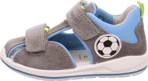 "The BOOMERANG sandal will not only delight little football fans. Closed at the front and made of soft suede leather and textile, the superfit learn-to-play sandal ensures that the first steps are carefree. The Velcro fasteners are individually adjustable for a perfect fit. The casual foot ball, the neonwebbings and the colorful stripe in the sole also make BOOMERANG a great eye-catcher"