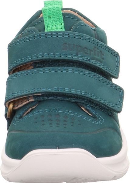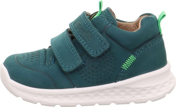"The superfit BREEZE sneaker features a sole with a cute honeycomb structure that rolls easily. Perfect for the first steps. The decorative print or the embossing in the supple leather look elegant and the absence of seams in the flex area rounds off the low shoe in a child-friendly way. For the ideal foot climate, it is equipped with a chrome-free tanned lining leather. Good to know: BREEZE has been awarded the Blue Angel (www.blauerengel.de/uz155)."