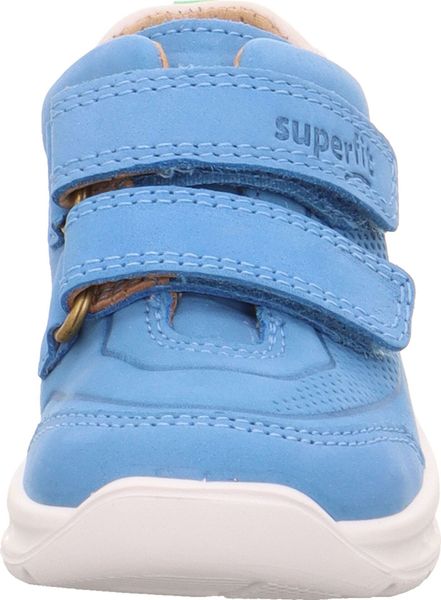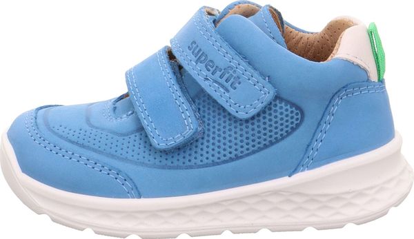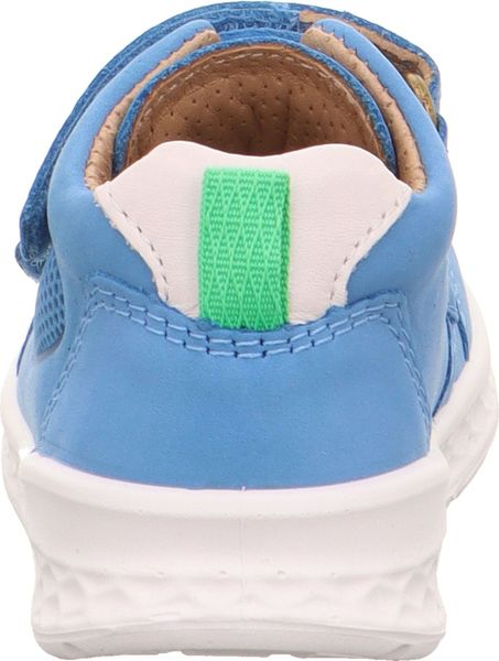"With the BREEZE sneaker, little feet can breathe a sigh of relief. The embossing on the side of the sporty superfit easy-walker shoe has a cleverly tapered point design. This looks particularly casual and really comes into its own on the soft nubuck leather. Typical BREEZE: the webbing on the heel in accent colors on the white nappafinish on the softly padded collar. The model has been awarded the Blue Angel (www.blauerengel.de/uz155)."