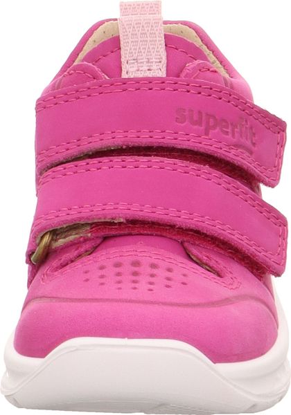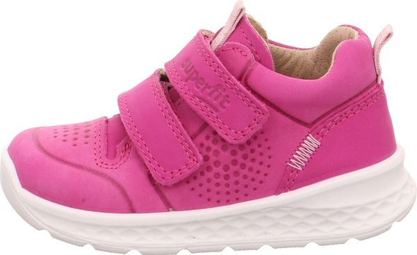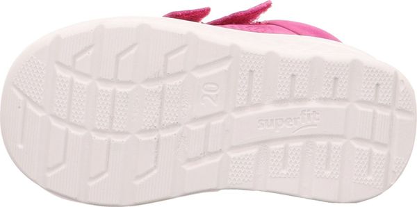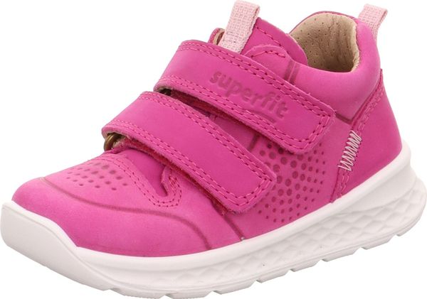 "The superfit BREEZE sneaker features a sole with a cute honeycomb structure that rolls easily. Perfect for the first steps. The decorative print or the embossing in the supple leather look elegant and the absence of seams in the flex area rounds off the low shoe in a child-friendly way. For the ideal foot climate, it is equipped with a chrome-free tanned lining leather. Good to know: BREEZE has been awarded the Blue Angel (www.blauerengel.de/uz155)."