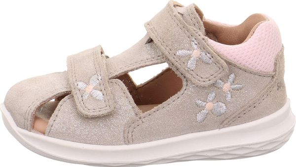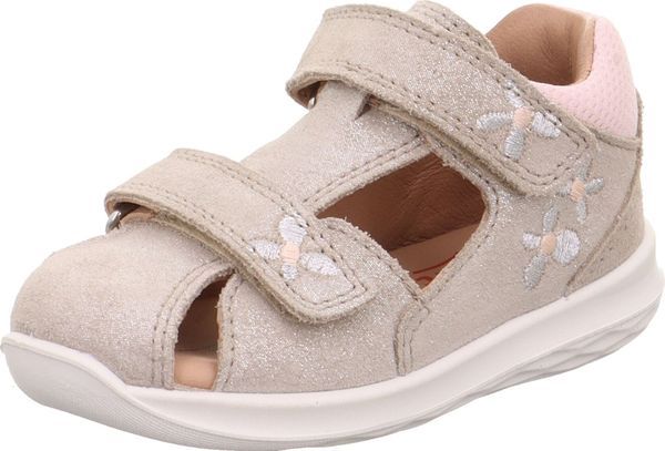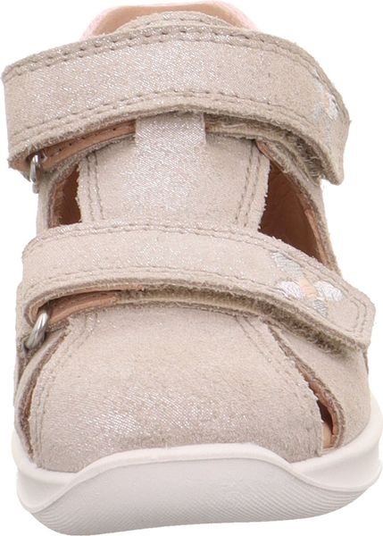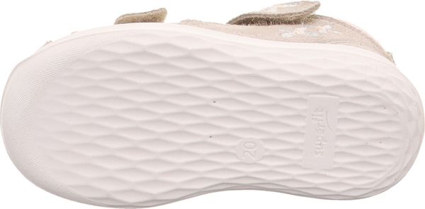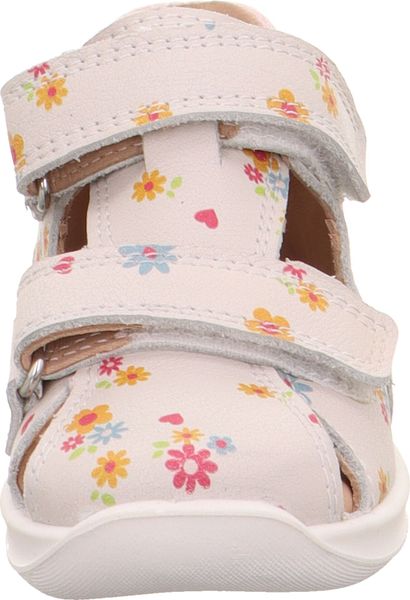 "The BUMBLEBEE baby walker sandal with its lovingly applied flowers looks enchantingly summery. The superfit toe sandal is closed at the front and made from a great combination of effect leather and durable textile. Ideal for the little ones. The flexible BUMBLEBEE sole not only looks great thanks to its honeycomb structure, but also ensures stability and easy rolling."