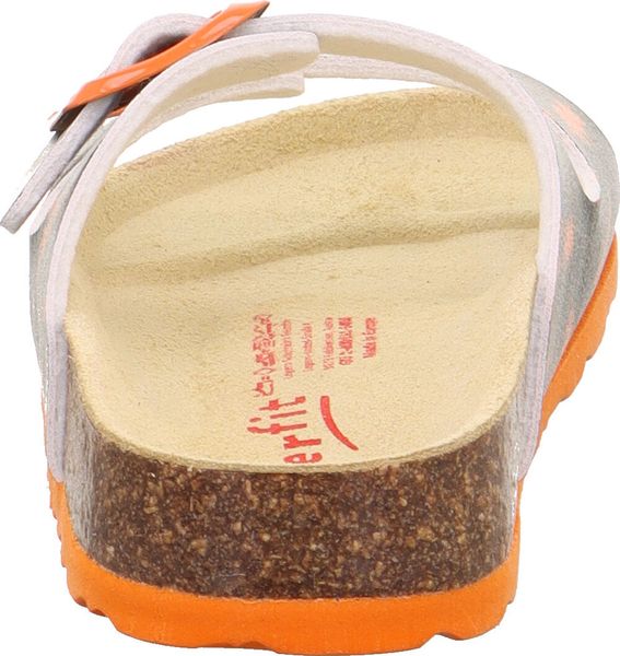 "The footbed slipper from Superfit is the perfect combination of functionalityu00e4t and styleu00e4t. This fashionable footwear is ideal for everyday wear and can be worn both as an airy slipper and as a summery sandal outdoors. The two adjustable buckles allow the width to be adjusted individually, ensuring optimum comfort. The orthopaedic deep footbed made from natural cork and covered in leather not only offers excellent support, but is also sustainable and supports the natural foot position."