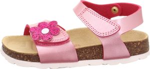 "Whether as an airy sandal outdoors or as a slipper indoors, the superfit footbed slipper is a real eye-catcher with its flower appliqué. Thanks to the 2 practical Velcro fasteners, both the front strap and the strap in the heel area can be individually adjusted. This ensures a secure fit. The anatomically shaped, genuine leather-covered cork footbed rounds off the high wearing comfort of this sandal."