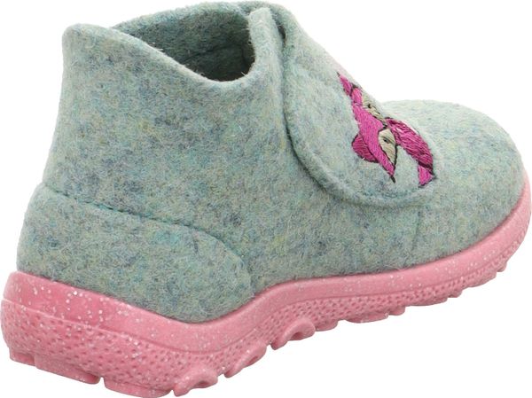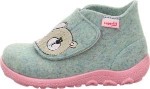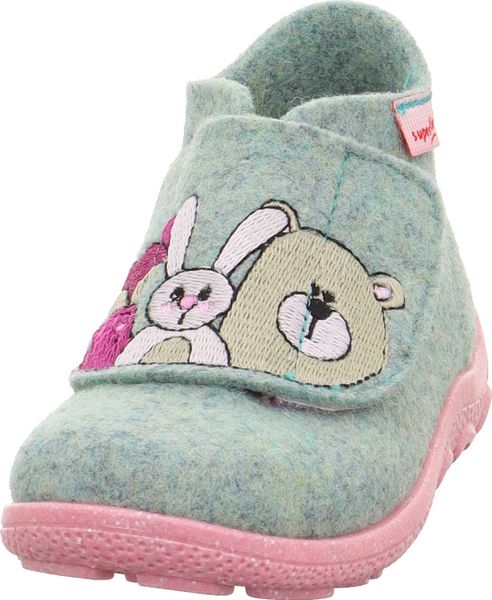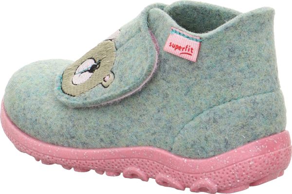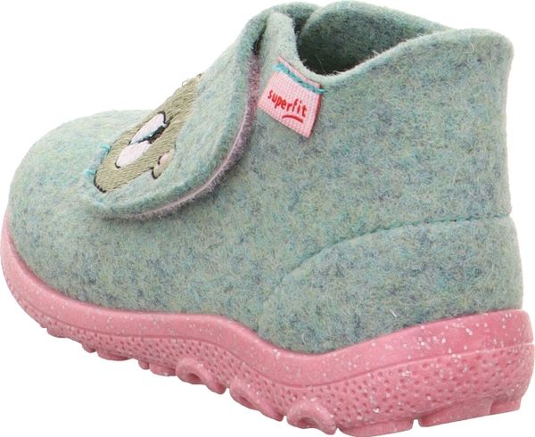 "The cozy HAPPY OCTI slippers from Superfit are the perfect choice for little adventurers who love to spend their free time indoors. Made from high-quality wool felt, these slippers offer an excellent foot climate, both inside and out, thanks to an impressive 70% wool content. A lovingly designed animal headapplication on the wide Velcro fastener gives the shoes a charming look that will go down well with children"