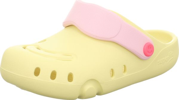 """The ""SPLASH ""clog ""from ""Superfit ""is ""the ""perfect ""choice ""for ""active ""children ""who ""love ""being ""outdoors ""or ""playing ""in ""the ""water. ""With ""its ""fun ""design ""featuring ""a ""smiling ""face ""with ""cool ""sunglasses, ""this ""shoe ""will ""quickly ""become ""a ""favorite ""among ""little ""ones. ""The ""waterproof ""mono ""material ""ensures ""that ""the ""clog ""is ""not ""only ""ideal ""for ""use ""in ""the ""swimming ""pool ""or ""on ""the ""beach, ""but ""also ""dries ""quickly ""after ""a ""dip ""in ""the ""water"