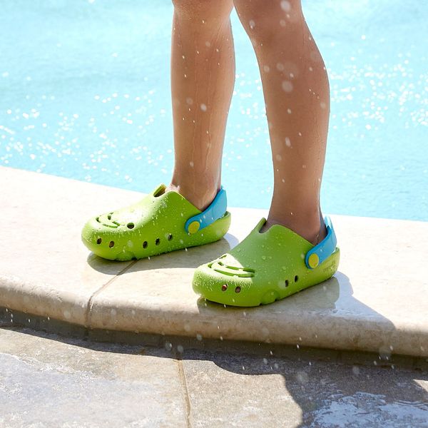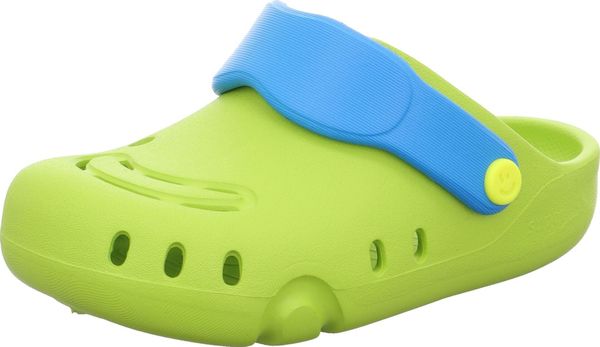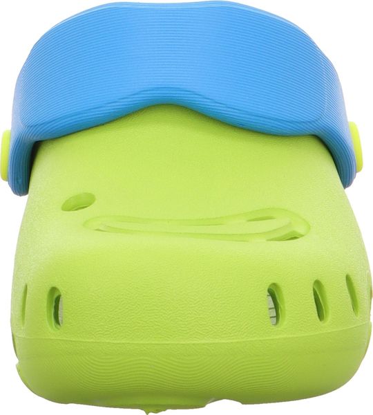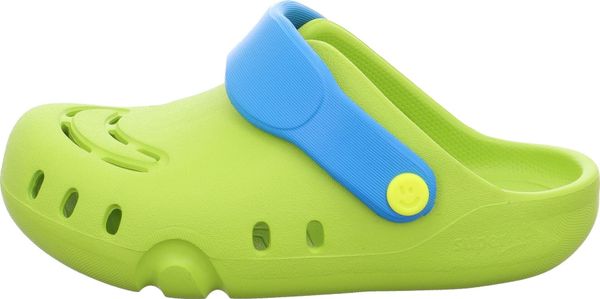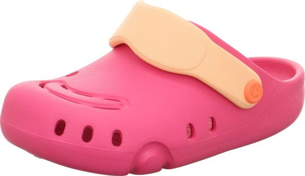 "Impresses with its smiling face and cool sunglasses: the SPLASH clog. The superfit sandal is made from a soft, water-resistant mono material that doesn't shy away from a dip in cold water and dries quickly afterwards. Ideal for the swimming pool, garden or vacation. The lightweight, flexible sole of SPLASH protects the feet from sharp edges and stones, but can also be converted into a marble run. Thanks to the WMS W width, the model is also suitable for wider feet"