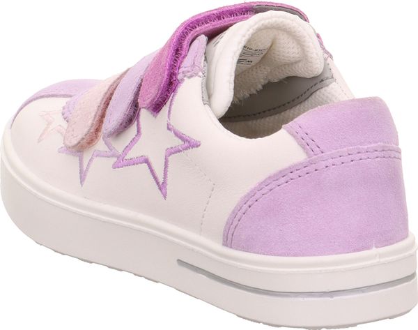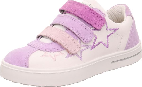 """The ""Stella ""sneaker ""from ""Superfit ""is ""the ""ideal ""companion ""for ""the ""urban ""everyday ""life ""of ""little ""girls. ""Made ""from ""high-quality ""nappa ""leather ""and ""suede, ""it ""combines ""stylish ""design ""elements ""with ""practical ""functions. ""The ""shoe ""stands ""out ""thanks ""to ""its ""elaborately ""embroidered ""stars ""and ""the ""colorful ""zigzag ""strap ""trim, ""which ""adds ""a ""touch ""of ""glamour ""to ""any ""outfit. ""Three ""color-graded ""Velcro ""straps ""not ""only ""ensure ""a ""secure ""fit, ""but ""also ""make ""it ""easy ""to ""put ""on ""and ""take ""off."