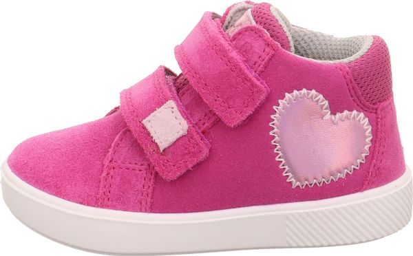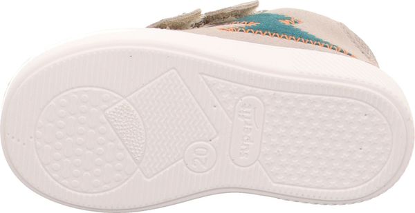 "Learning to walk: with the SUPIES sneaker, it becomes a game. The superfit model's cheerful sole profile design is inspired by pegging games and makes the first steps exciting and fun at the same time. The padded collar ensures a high level of comfort. The decorative leather square on the lower strap and the quick entry thanks to the Velcro fasteners are the icing on the cake of the SUPIES."