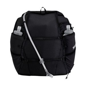 "Made from recycled 20D-nylon and breathable polyester-space-mesh, the vest ensures optimum ventilation and adapts flexibly to your body. In addition to its low weight of only 290 grams without hydration bladder and bottles, it offers expandable mesh pockets for additional storage space and easily accessible front pockets for quick access to energy bars and other essentials"