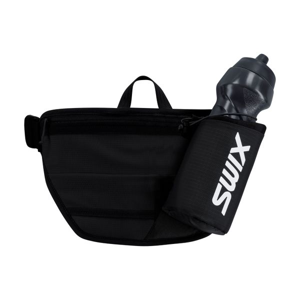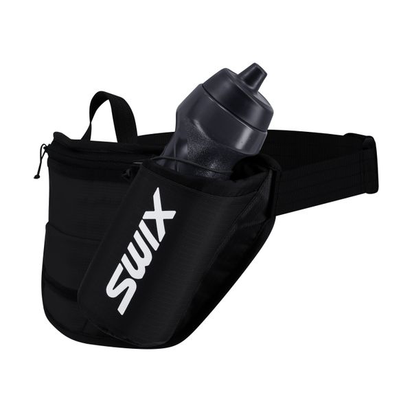 "The Vantage Bottle Belt from Swix is the ideal companion for anyone who enjoys sporty activities, be it speed hiking, running or hiking. This sophisticated hydration pack is specially designed for shorter trail runs and offers a clever solution for staying hydrated during training. Included is a 600ml sports bottle that is BPA and PVC-free, which ensures healthy and environmentally friendly fluid intake."
